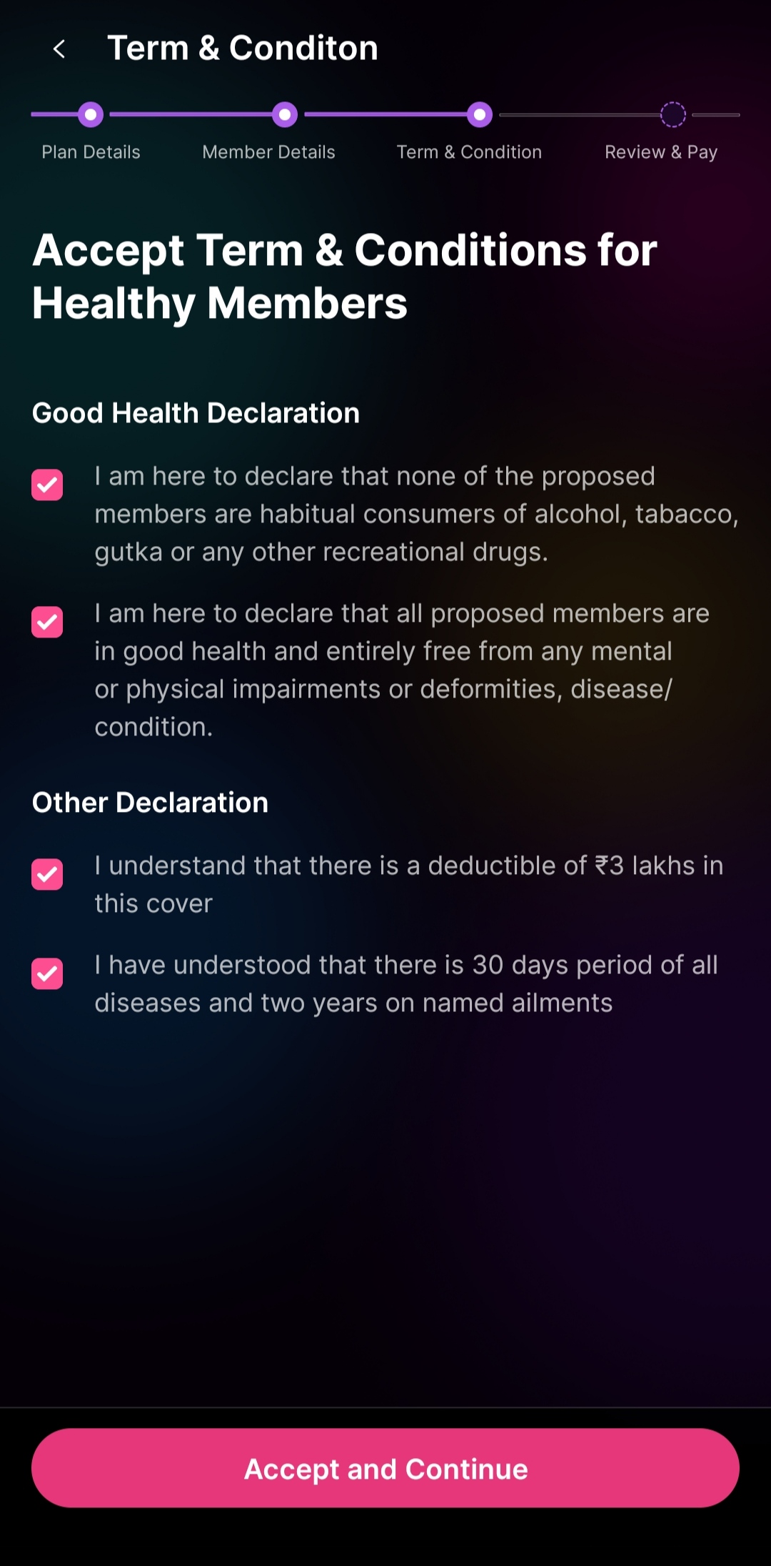 10. Once you have read the terms & conditions, check all the boxes, and click on "Accept and continue"