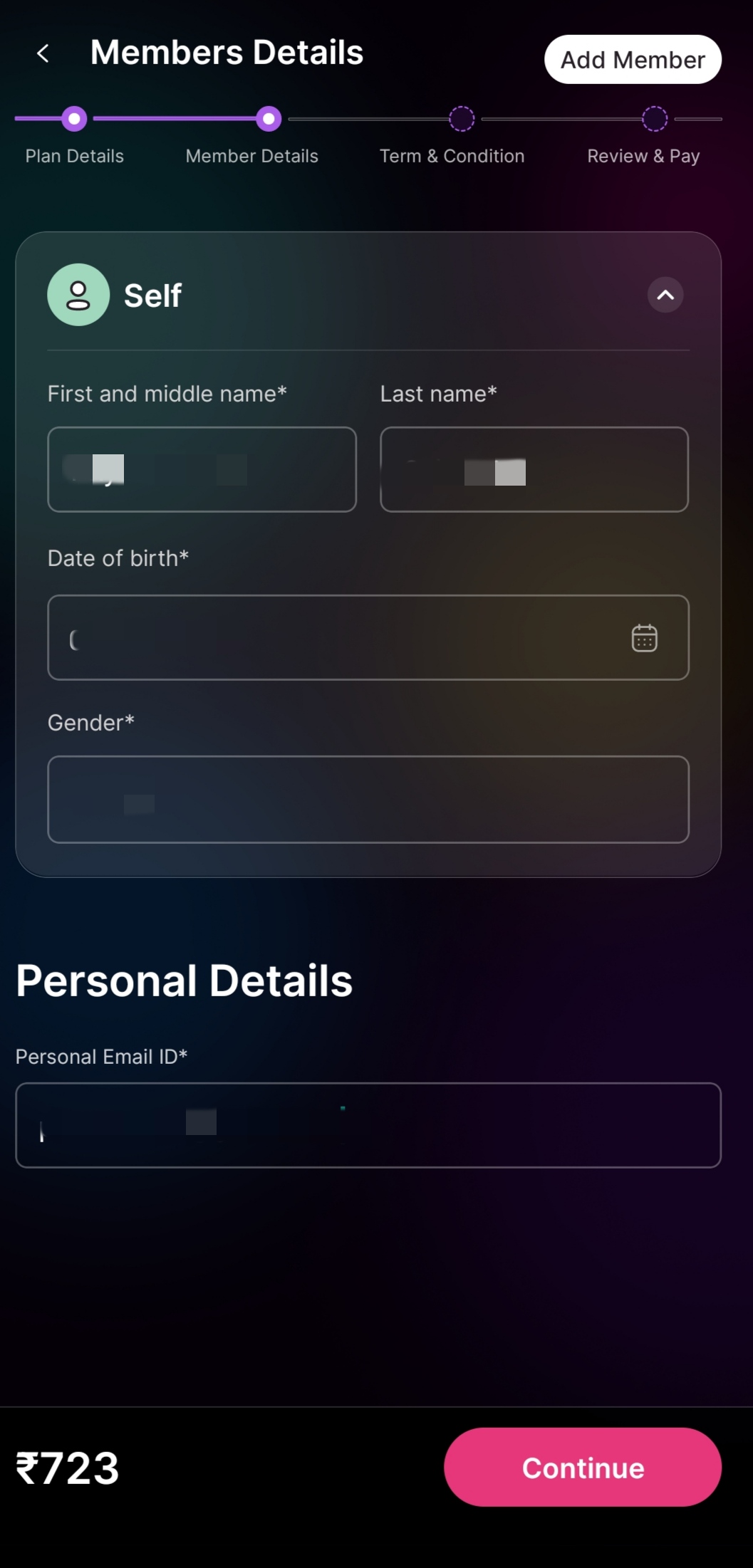 9. In the next step, fill in the member details and click on "Continue"