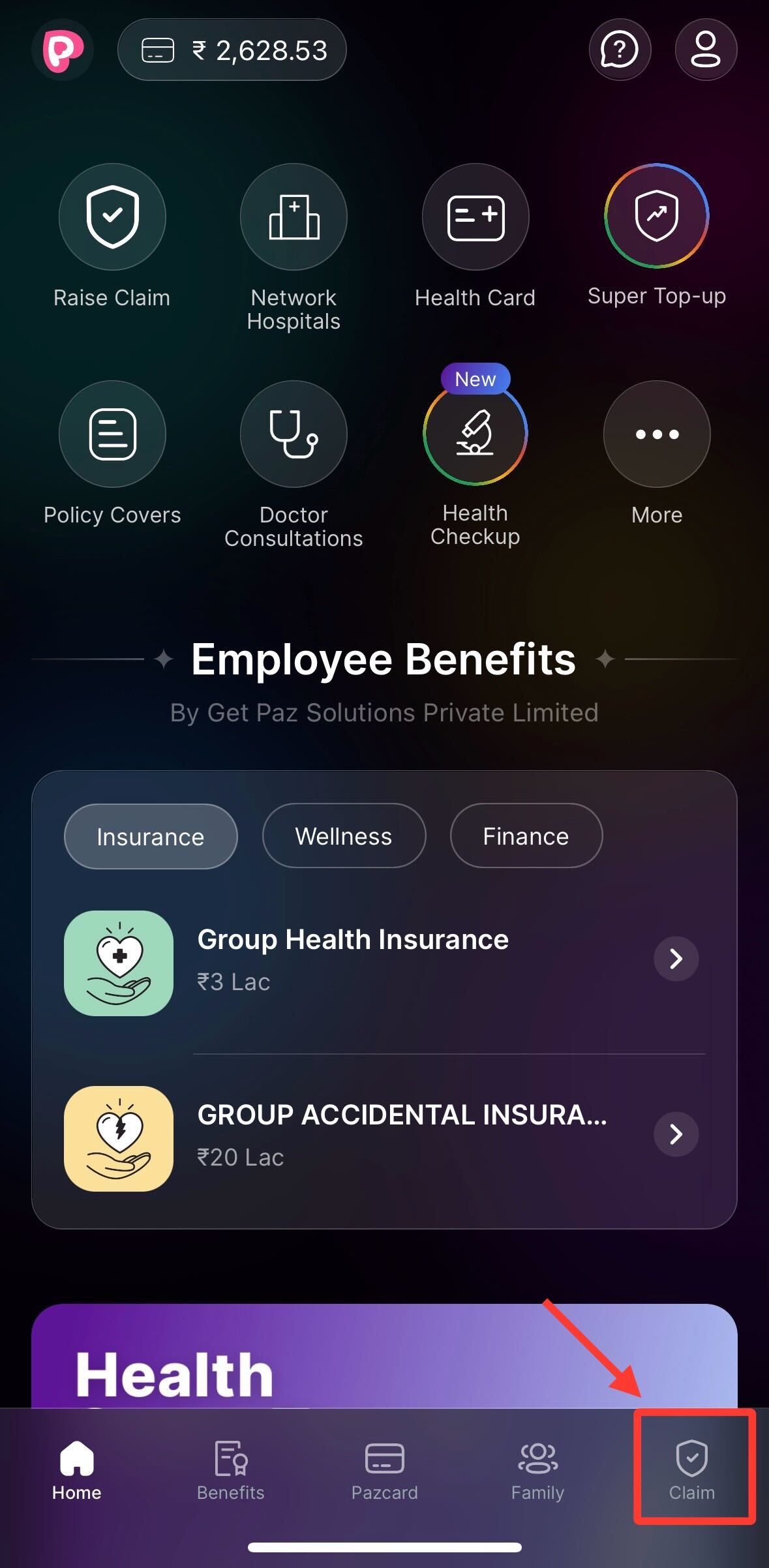 Step 1: Log in to your Pazcare app with your registered mobile number and OTP.